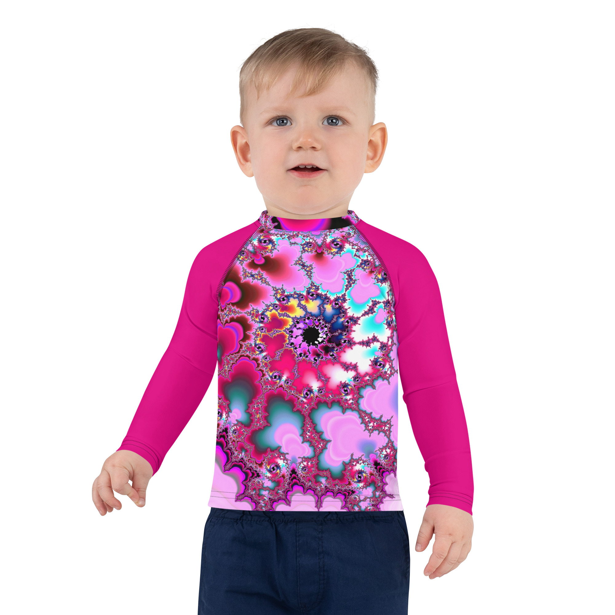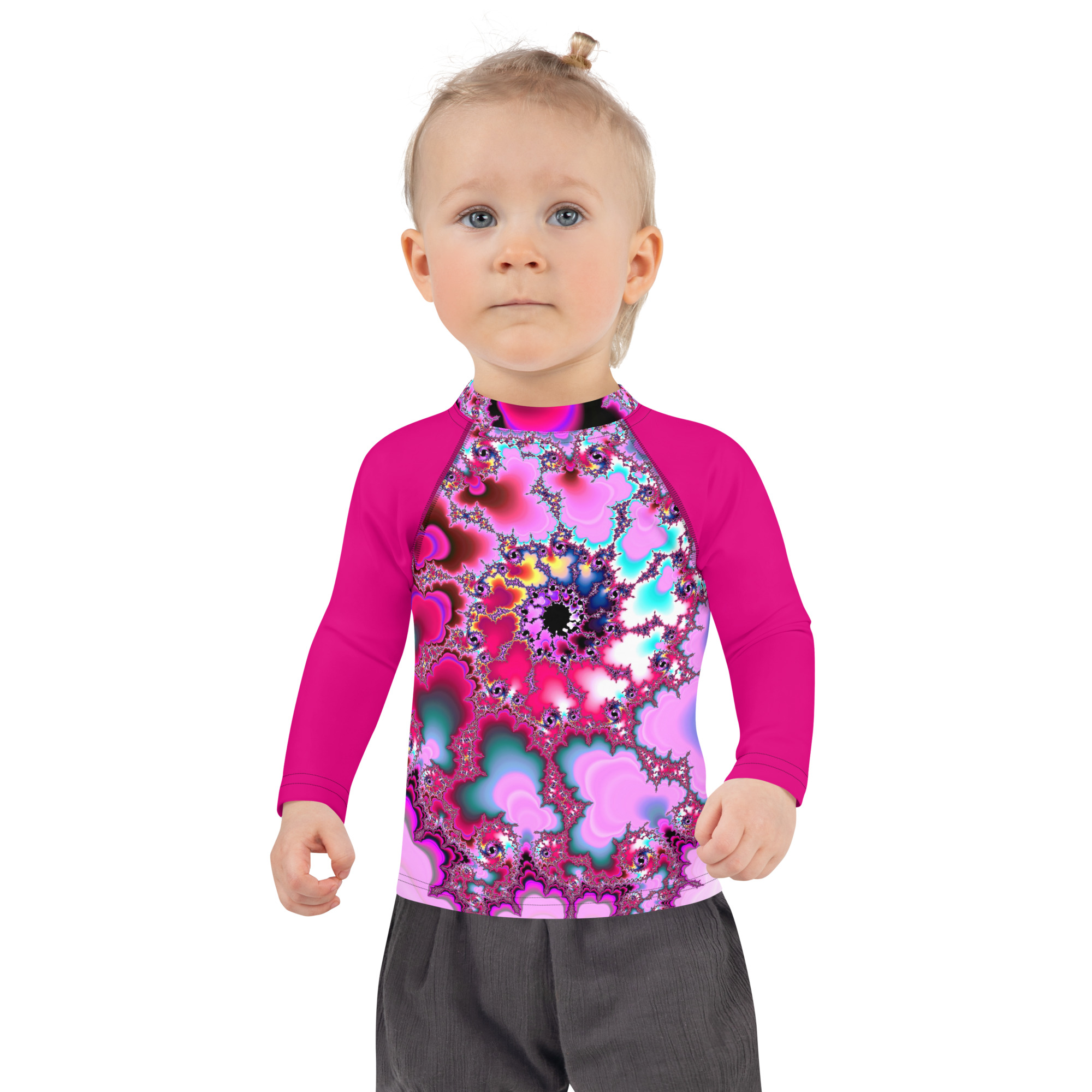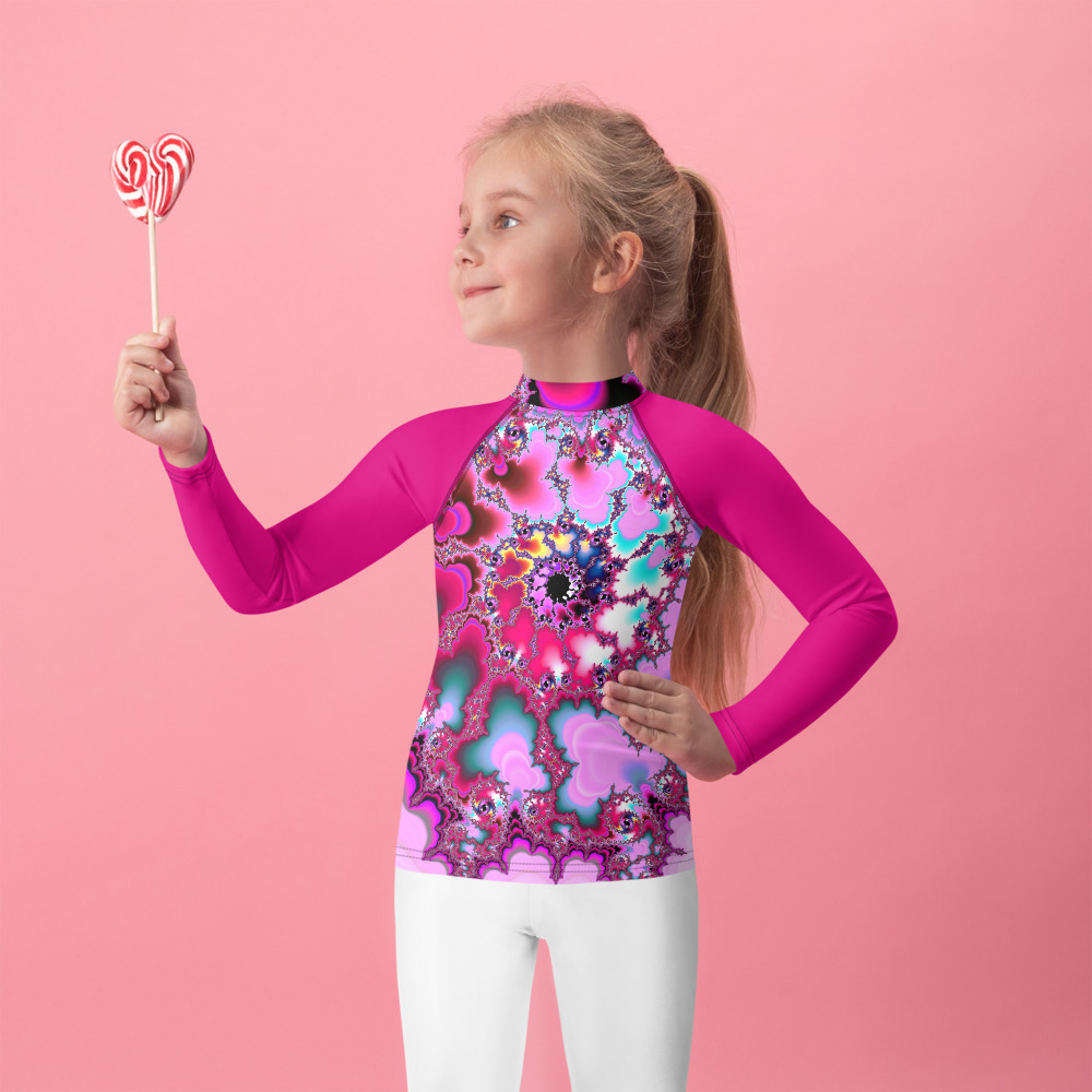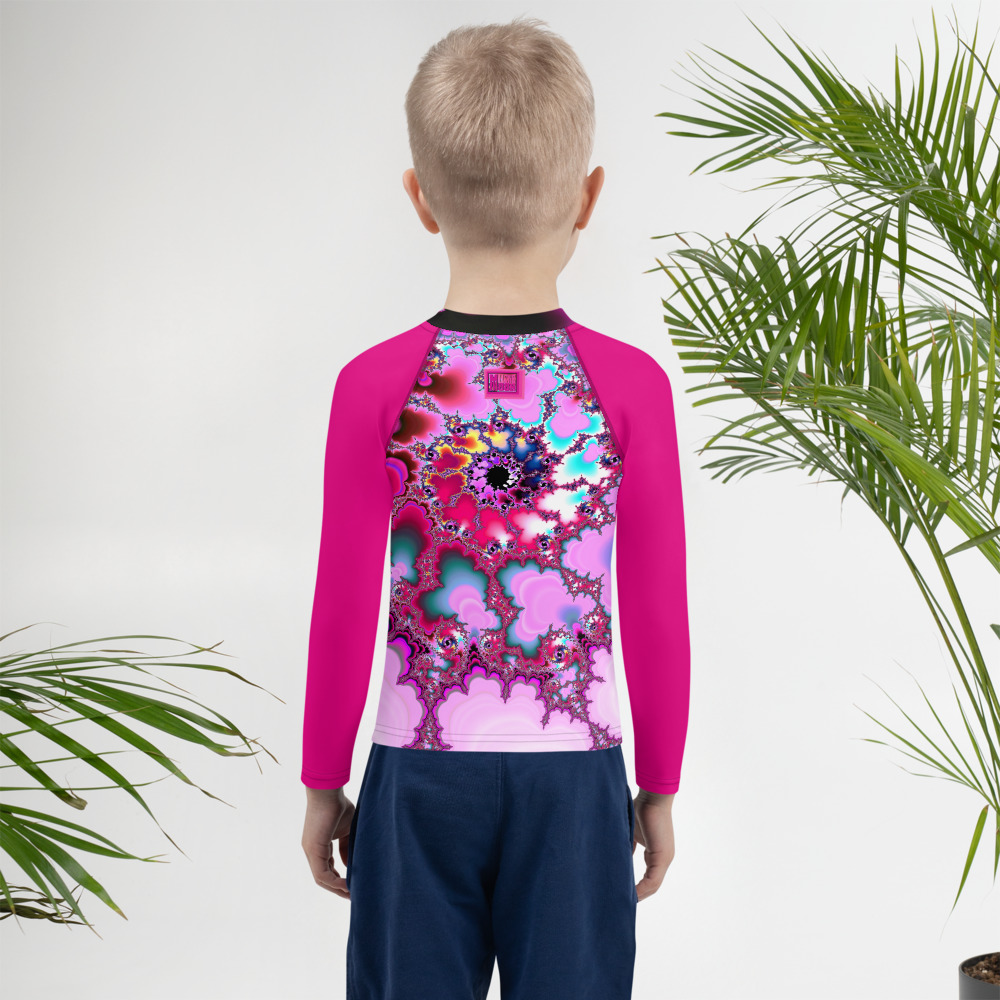 Protect the little ones from the elements with this colorful kids rash guard. Its sun-protective fabric and long body and sleeves make it perfect for running around on the beach, or just being active indoors.